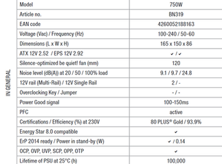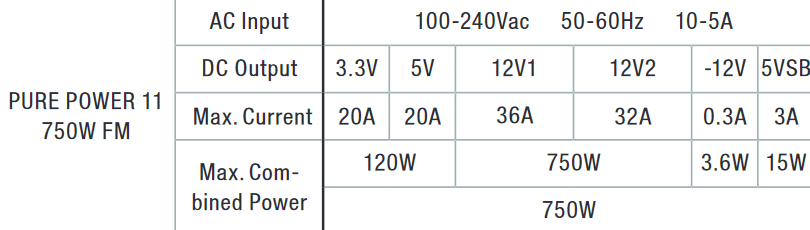 The energy certifications obtained by Pure Power 11 FM 750W under test are achieved with a fair margin, especially at medium load.
