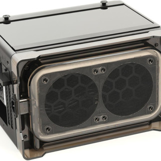 Opening the back of the case with the hexagonal ventilation holes, you can see the 120mm fan for blowing out the heated air.