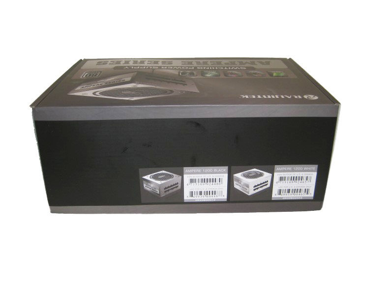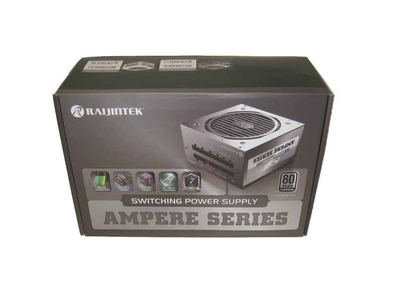The Raijintek Ampere 1200 box is colourful with some key points listed including ATX 3.0 Ready, PCIe 5.0 Ready, and 80 Plus Platinum – alongside the use of Japanese capacitors. At the face of the box is the PSU's model name and pic.